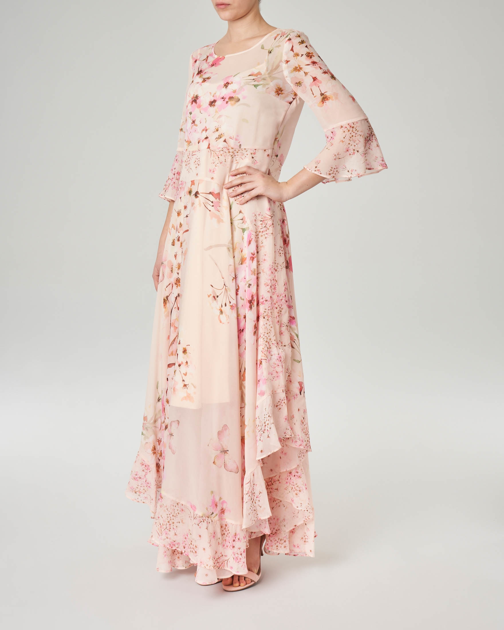 / Abito Lungo Floreale Cerimonia - Abito da cerimonia in stile kimono con maniche a campana e ... : Sensuale ed elegante abito stampato con motivo floreale con svasatura.